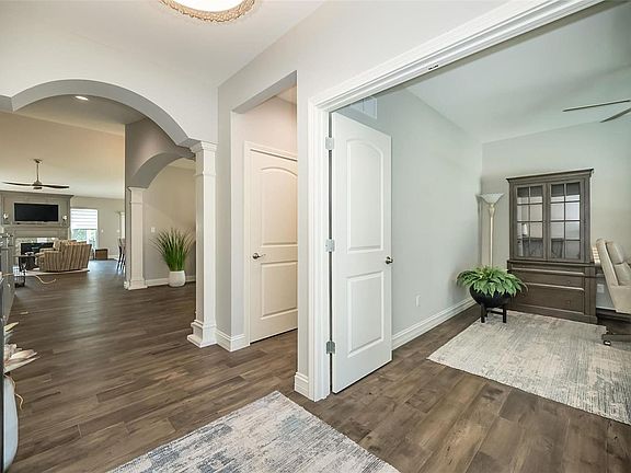 - Separate Dining, Cathedral Ceiling(s), High Ceilings, Open Floorplan, Walk-In Closet(s), Bar, Breakfast Bar, Breakfast Room, Kitchen Island, Custom Cabinetry, Eat-in Kitchen, Solid Surface Countertop(s), Double Vanity, Entrance Foyer