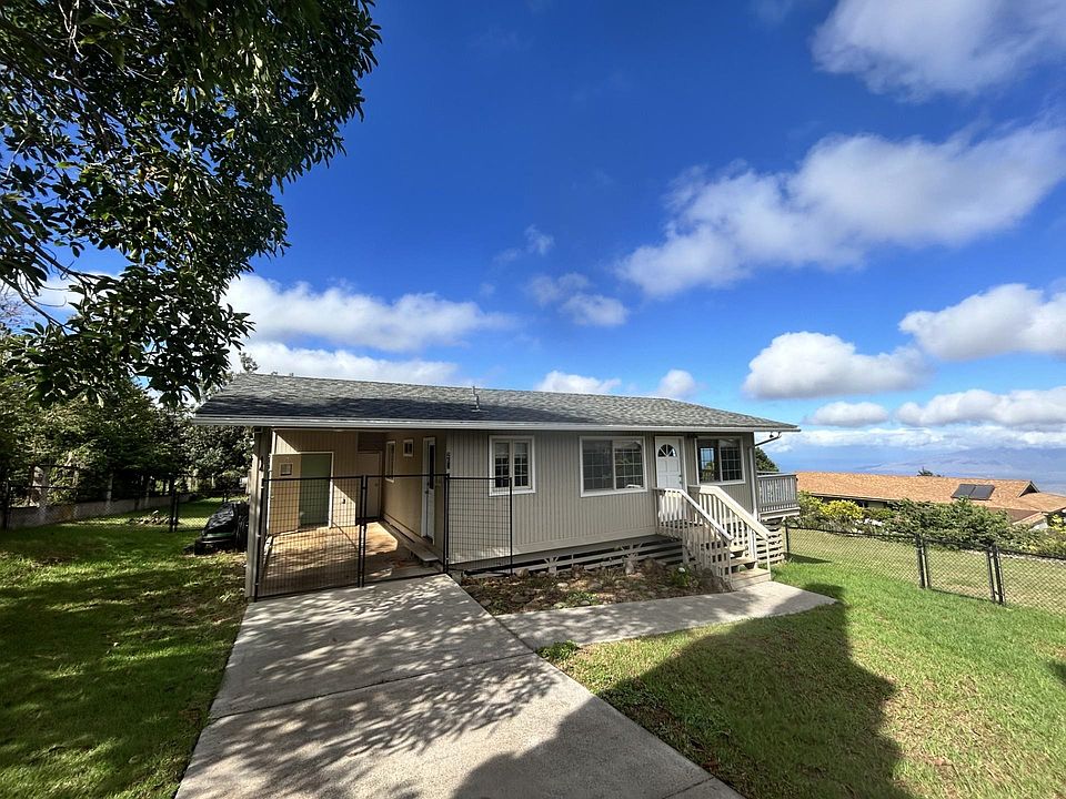 Retreat Upcountry to this charming 2/1, Kula cottage on the slopes of Haleakala. You will enjoy sweeping views from mauka to makai and a rural setting. It is picturesque w/ a timeless, lava rock wall and rolling green pastures beyond. Do you need room to grow? If so, there is plenty of room to build your main home and possibly an additional ohana on the level, half-acre lot. You will embrace the elevated location and climate, ideal for landscaping, gardening, and keeping cool above the island heat. This canvas is just waiting for you, to create your own Curtis Cost painting on this sweet Upcountry property boasting ocean and mountain views in the background.