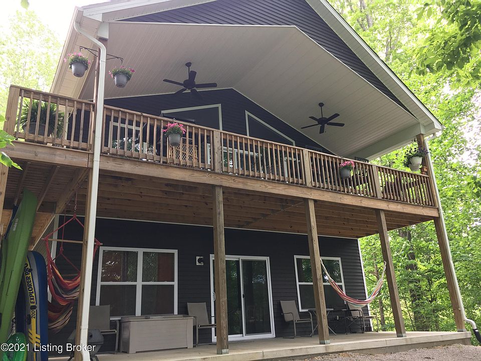 Beautiful Lakefront House with gentle slope to the dock. This home is overlooking the lake at Holiday Rough. You can practically throw a fishing line into the water off the deck. The main level of the home features 3 bedrooms & 2 full baths an open floor plan with a custom kitchen with leather marble counter tops. The kitchen spills into a cozy living room. Enjoy the view of the lake from the dining area off the kitchen. Sit on the deck and take in the beautiful sunsets in the shade. The lower level has a 2 car garage and entertainment room. The windows in the living room also allow for a great view of the lake. The dock is in front of the home. The Boat Dock is transferable with Corps of Engineers approval. Marina is close by and their is a boat ramp in the subdivision.