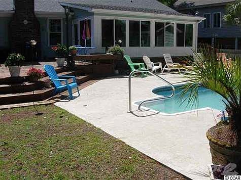 Great house for entertaining. Lots of living space inside and out. In-ground pool, pool house, 1,000 ft tiered deck w/hot tub. Outdoor shower, boat for lake, golf cart to go 2 blocks to beach, whole house hurricane shutters, sprinkler system, large fenced yard with dog pen and dog house. 6 man hot tub off master bedroom. Living room has remote-control gas fireplace. 10X24 sun room overlooking pool and lake. NEW in 2013: roof, paint (inside and out), carpet. New heat/a/c in 2010. Owner is licensed SC Realtor Brokered And Advertised By: James W Smith Real Estate Co Listing Agent: Vikki Miller