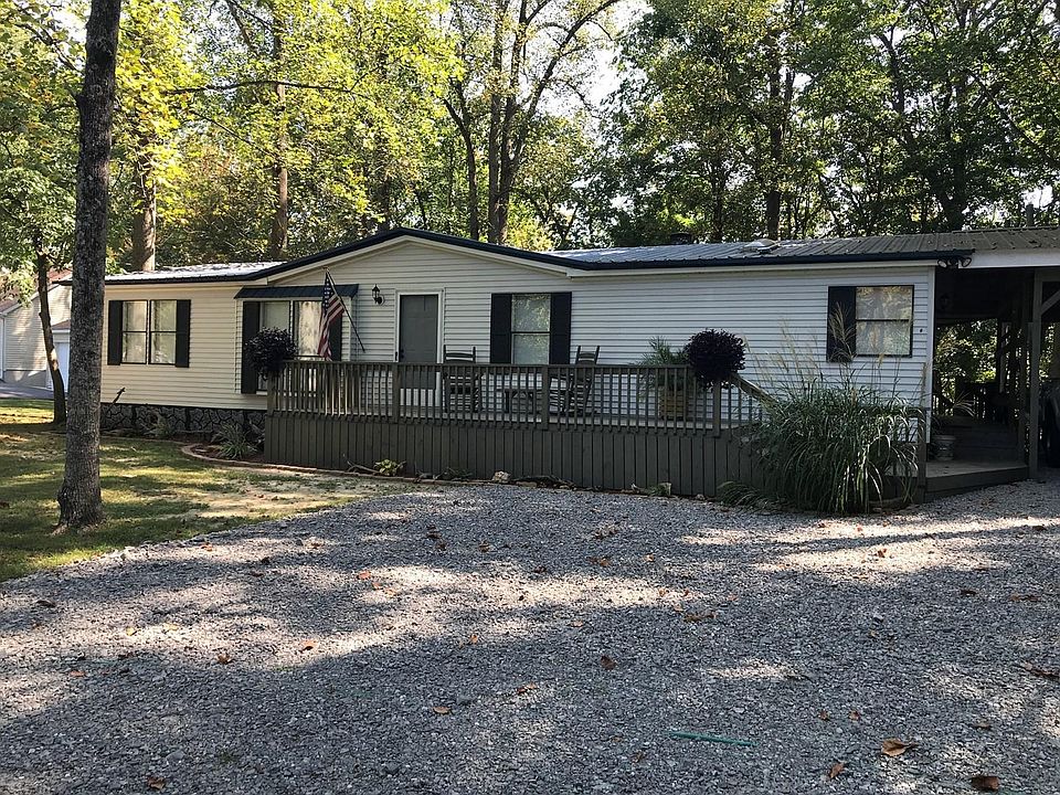 Country home with seasonal lake views of Dale Hollow Lake in Albany, Kentucky. This home is minutes away from Wolf River Marina on Dale Hollow Lake in Albany, Kentucky. The 3 bedroom, 2 bath, modular home has been newly remodeled with an open floor plan. The home consists of a living room, den that features a wood burning fireplace that leads out to the covered porch, kitchen with white cabinets, dishwasher and an electric stove. The master bedroom has 2 closets, master bath has two sinks and shower, and the other 2 bedrooms share the hall bath. The home has a very large attached covered carport and a large covered back porch which has electric with seasonal views of Dale Hollow Lake.