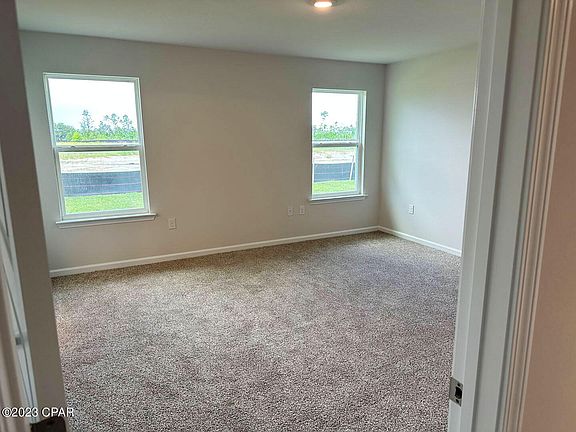 Park Place in Callaway is our closest new construction to Tyndall Air Force Base! This Lakeside floor plan is located on Lot 30 at 263 Lawton Branch Way. As you enter the Lakeside floorplan you will notice immediately the brightness of the entry hallway. is 5-bedroom 3 bath, 2012 square foot home is an open floorplan with two bedrooms separated by a full bathroom just off the front hallway and two additional bedrooms and a shared bath off the opening living area. The spacious primary bedroom leads to the bathroom featuring a large shower, double vanity, and a large closet. This home is perfect for entertaining or a large family as the living space is open and features a dining area, a kitchen with center island. Interior features of this home include beautiful Engineered Vinyl Plank flooring, cabinetry that is bright with Ivory tone, and quartz countertops. The bedrooms feature plush carpet. The exterior of these homes includes vinyl siding and fully sodded yards with flower bed at the front entry. Park Place is conveniently located close to shopping, recreational parks, schools, and is only a few minutes to Tyndall Air Force Base.