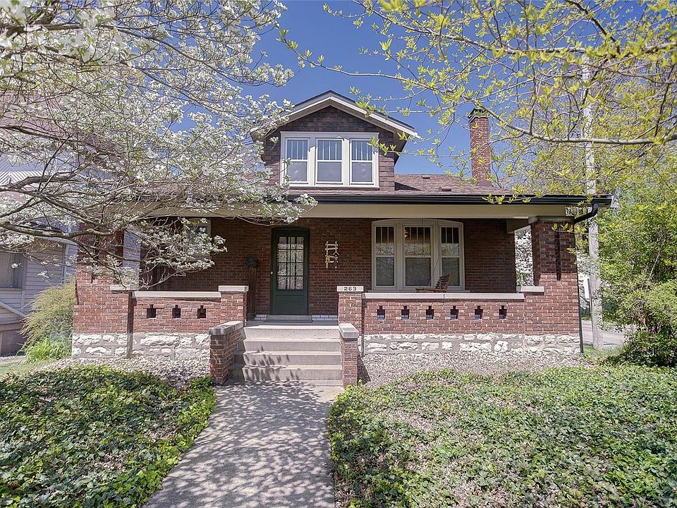 Don't miss your chance to own this beautiful brick home! Just minutes away from downtown and tons of charm. Step into the foyer with beautiful millwork and tons of character. The living room has stain glass windows and built in cabinets surrounding a wood burning fireplace. It is open to the dining area, that you walk thru to the kitchen New granite counters and new flooring and a awesome gas stove/convection oven and stainless steel appliances. The 2 main bedrooms are divided by a large walk thru closet and the full bath is also in the hall way. Walk upstairs on new carpet to 2 spacious bedrooms and a full bath. It's has a unique lay out with the sink being just outside the shower/bathroom. Tons of storage upstairs too. The basement has the laundry area and more storage. With just a step outside you get the secret garden with a brick wall for extra privacy. The detached garage and extra covered parking has access from alley. Don't let this one get away!!