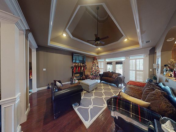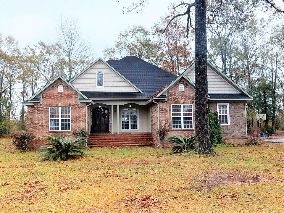Located in the Rocky Creek school district of George County and only minutes from the MS/AL state line, take a look at this 3 bedroom 2 bath custom home on 4.6 +/- acres. With over 2500 sf of space, you will find a second living area that could also be a home office, an eat in kitchen with stainless appliances, formal dining room with beautiful coffered ceilings, crown molding, his/hers master closets, a gas fireplace, and a bonus room located above the garage. Need room for animals? This property is fenced and features a recently added 30x34 barn/shed that is currently set up for horses. Don't miss out on this one, it won't last long.