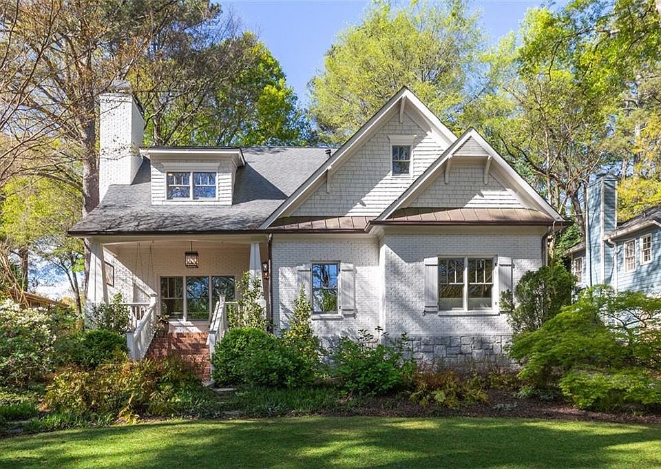 Nestled in the beloved pedestrian-friendly neighborhood of Glenwood Estates, just steps from top-rated City of Decatur schools and Glenlake Park's nature trails, a dog park, a playground, tennis courts, and a pool create an ideal environment for families and outdoor enthusiasts. Situated on a picturesque half-acre lot, this urban retreat exudes tranquility with its tree-lined streets and meticulously landscaped grounds adorned with hydrangeas, boxwoods, ferns, and camellias. Step onto the welcoming front porch, complete with a classic swing, inviting you to experience the light-filled living room featuring a wood-burning fireplace framed by built-in shelving, perfect for showcasing your media equipment for a surround sound system. The seamless open floor plan connects the living room, kitchen, dining room, and back den, creating an inviting space for gatherings and everyday living. The chef's kitchen features custom inset cabinets, soapstone countertops, and a farmhouse sink beneath a large kitchen window. The kitchen island serves as the heart of the home, providing ample space for entertaining and easy access to the dining area and den. French doors lead from the den and dining room to a screened porch, extending the living space outdoors. The main floor features two guest bedrooms and a hall bathroom, with one bedroom currently utilized as a library with floor-to-ceiling bookshelves, catering to avid readers or a handsome home office. Upstairs, discover the spacious primary suite boasting French limestone tile, a separate soaking tub and shower, a double vanity, and a generously sized walk-in closet. An open loft area provides versatility as an upstairs den or playroom, leading to two additional guest bedrooms and bathrooms. The convenience of an upstairs laundry room adds to the home's functionality, completing this exceptional property designed for modern living in a sought-after community. Outside, the screened porch leads to a crushed slate patio offering an enchanting setting for alfresco dining while overlooking the expansive private backyard with a play structure, perfect for children and pets to enjoy. Additional living space above the detached garage includes a bedroom and bathroom, ideal for guests, a home office, or a fitness room.