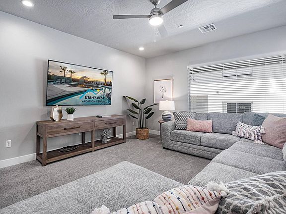PRICE REDUCED! FULLY FURNISHED POSSIBLE RENTAL! Located in Zion Village in Hurricane, Utah near Sand Hollow Reservoir for boating and sand dunes, just 20 minutes to St. George, and just 30 minutes to Zion National Park in Springdale. Located in the center of Southern Utah, our resort-style vacation destination is perfect for immersing yourself in the natural beauty just minutes away from Zion National Park and exploring the recreational opportunities at Sand Hollow. Zion Village offers an array of incredible amenities, including a lazy river, cascading waterfalls, a hot tub, and a fire pit, ensuring there's something for everyone to enjoy. Additionally, the clubhouse provides full access to our fitness room, allowing you to stay active during your stay. For outdoor enthusiasts, a short drive to the nearby Sand Hollow Reservoir offers year-round boating adventures and the opportunity to experience the thrill of exploring the silky smooth red sand dunes on an ATV. Golf enthusiasts can also plan a day on the greens with friends at the nearby Sand Hollow Resort or the new Copper Rock in Hurricane. Zion Village is the newest gem in Southern Utah, and Hurricane is the place to be!