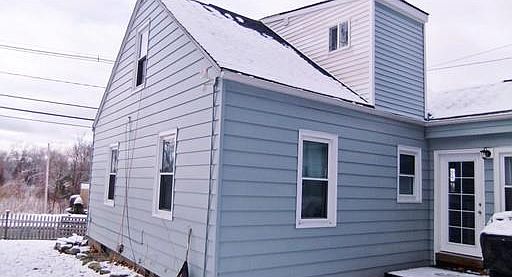 Move right into this tastefully decorated, updated cape. Updated kitchen (2011) with granite counter tops with breakfast bar, hardwood floors, generous cabinet space open to dining room with new floor. Large 1st floor master BR with walk-in closet. Bathroom completely updated 2011 with all new fixtures, granite counter tops and tile floor. 2 BR's and a full bath with shower and pedestal sink all renovated 2014 on the 2nd floor. Windows replaced @2010. 2 driveways, 1 on Main St. and 1 on side street. Garage under with insulated door and garage door opener. Yard landscaped with stone wall and fire pit. Partially finished lower level with coal stove that heats the whole house for under $700 all winter. Electric heat used for back up.