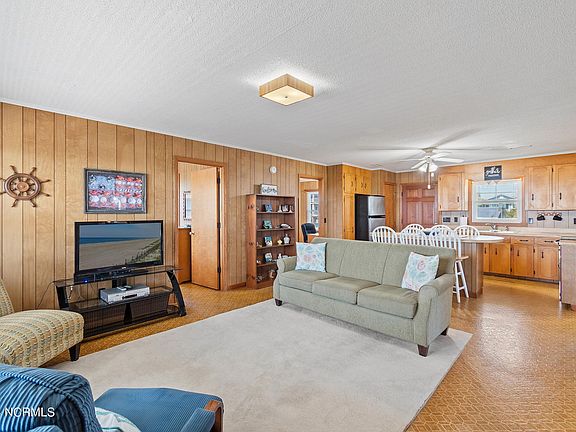 Charming beachfront cottage offering picturesque views of the ocean and sandy shores. This cozy four-bedroom home features two Jack and Jill bathrooms in the traditional ''H'' style layout, complete with inviting paneled walls that evoke a serene beach ambiance. Kitchen, dining and family area all open. Enjoy the Boulevard scene or serene ocean vistas from the front and rear covered porches. Below the house, find convenient concrete parking and a storage room with laundry facilities. Enhancing the exterior, a lovely flower bed graces the backyard, while roses adorn the front right side. Access to the beach is conveniently shared via a private pathway on the left, rear side of the yard. The property boasts updated windows and vinyl siding from 2009, a new roof installed in 2016, and a new HVAC system added in 2022. Additionally, kitchen appliances were replaced in 2015, and the cottage comes mostly furnished. With a little tender loving care, such as smoothed ceilings and new flooring, this cottage could be perfected for its next owner. Whether as a primary residence, beach retreat, or investment opportunity, this property offers versatile potential. Never rented out and owned by the son of the original owner, it holds a prime location near bridge access, the Chapel, restaurants, and various amenities of Town of Holden Beach, including picnic areas, playgrounds, a splash pad, boat ramp, pier and Sunday evening concerts. Don't miss the chance to explore this charming coastal gem today so you can become a part of this family-friendly beach.