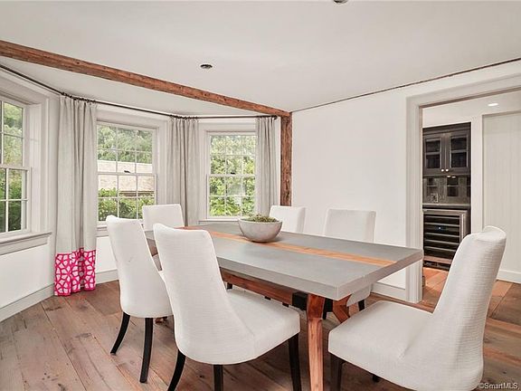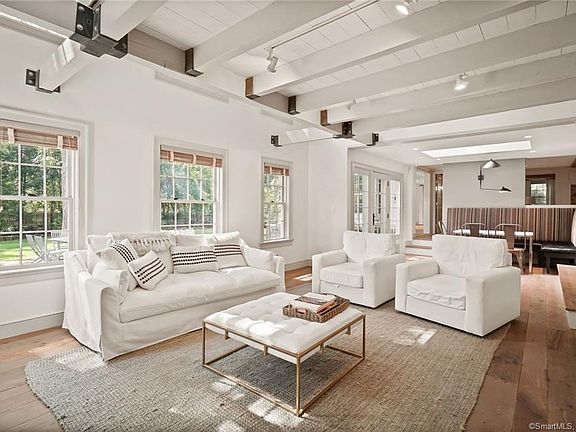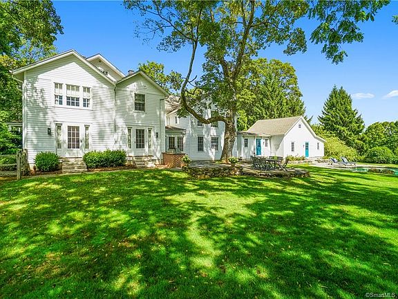 CALL/TEXT LISTING AGENT HANNELORE 914-450-3880 TO TOUR SPECIAL Landmark, walk to town home featured on the 2019 New Canaan Cares Home Tour, & awarded the 2019 Presidents Award from the New Canaan Preservation Alliance. The property underwent a million dollar 2017 renovation, lead by noted architect Rob Sanders and designer Havilande Whitcomb. A perfect marriage of hip and historic, the home features a generous open floor plan, leading to new stone terraces and a salt-water, heated pool. Impressive gourmet kitchen, formal dining and living areas opening to the outdoors for easy entertaining. Original exposed beams & custom mill work throughout, new baths, all new plumbing & electrical, 5 bedrooms, and a new Master Suite with custom dressing rms. Charming Guest Cottage, and gorgeous flowering gardens complete this in-town oasis with impressive privacy.