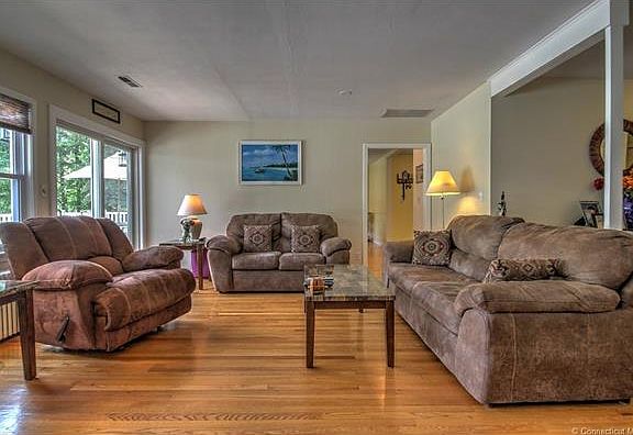 Mini estate on 2.75 acre park like grounds. Three bedroom ranch with large country kitchen and pantry. Main level 21'x16' family room that leads to a 18X9 deck. Living room with fireplace opens to an impressive 41X14 trex deck overlooking private backyard with above ground pool. This home has a newer roof, siding, gutters and windows. Updated baths, many closets included a large cedar closet plus a semi finished walk up attic. It is conveniently located to US1, stores, restaurants and minutes to I-95