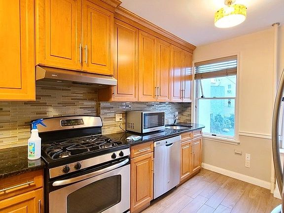 No Fee King Sized 1 Bedroom! Actual Photos of Unit Newly renovated and just 1 block from the Grand Street L! Located on a quiet and tree lined street this well priced 1 Bedroom features large kitchen with full size stainless appliances including dishwasher! Tons of storage space and counter space, eat up bar, and wine cooler all add to the kitchen! Living room includes enough space for dining table, couch, and is perfect for entertaining. Bedroom features enough space for a King sized bed and more and overlooks the quiet tree lined street. Central AC and hardwood flooring are featured throughout the apartment. Tons of natural light!
