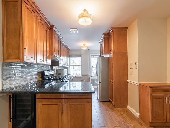 *Beautifully done 1 bedroom/ 1 bathroom apartment.* Nestled on a peaceful, tree-lined street, this 1-bedroom apartment boasts a spacious kitchen equipped with full-size stainless steel appliances, including a dishwasher. The kitchen also offers plenty of storage and counter space, an eat-in bar, and a wine cooler for added convenience. The living room provides ample room for a dining table and couch, making it perfect for entertaining. The bedroom is large enough to accommodate a king-sized bed and more, with views of the serene, tree-lined street. Central AC and hardwood floors are featured throughout the apartment, which is filled with natural light. No pets allowed.