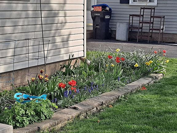 Very quiet neighborhood. Garage has 2 overhead doors. One in front, one in back. There is an invisible dog fence in the yard. 30 ft round above ground pool with 8 ft deck. 16 ft covered porch. Plenty of storage. Main bedroom is on first floor. Main bedroom has 2 closets. One is a walk in closet. Bathroom has pocket door into the bedroom. 2nd floor is freshly painted. New carpet throughout , new doors, new baseboards. Cedar closet and large attic. All Basically new electric throughout. Basement has framing for finished basement. Shed with 3 doors. 2 season garden. Creek borders backyard. Very peaceful. There will be items, equipment and some furniture that will remain if buyer wants them. No charge.