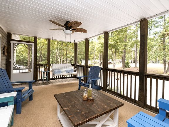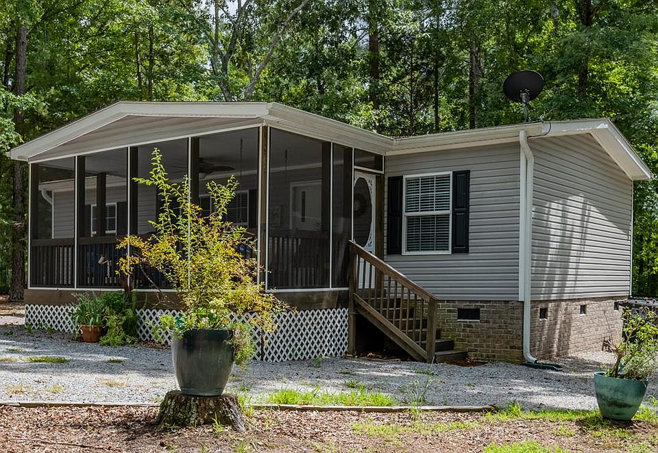This wonderful home is located on a corner lot in the wooded, Lake Gaston Estates neighborhood. The lightly used Clayton home features an open kitchen/family room floor plan, a tiled shower, separate laundry room with doors to the back yard. There you will find a wooden Gazebo, fire pit and fenced back yard for pets. There are two out-buildings included. A large 20'x25' 2 car garage with a 10' roll-up door and another storage building with air conditioning. With a circular drive and plenty of parking, this home boasts a large, 18'x12' screened porch for relaxing. The community provides a beautiful clubhouse, beach, private boat ramp, docks, and waterfront playground for the owners in the neighborhood.