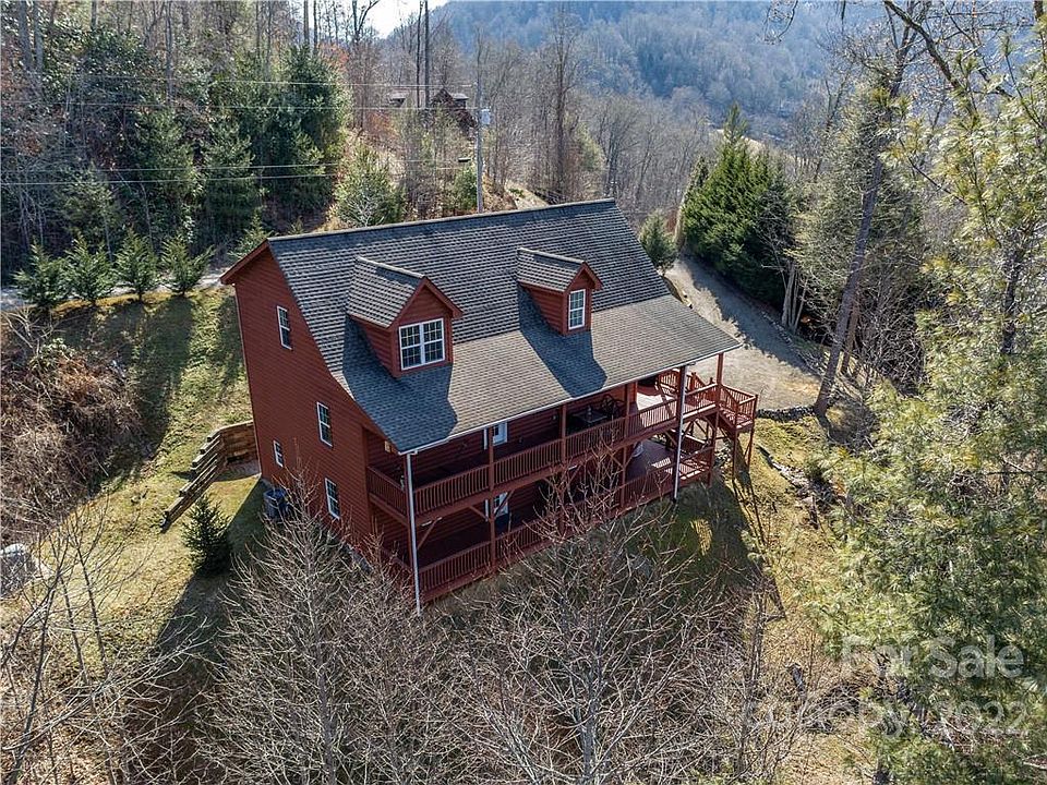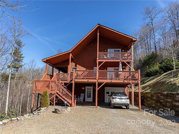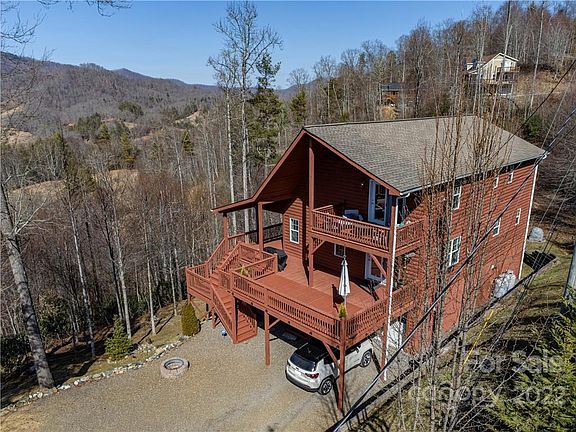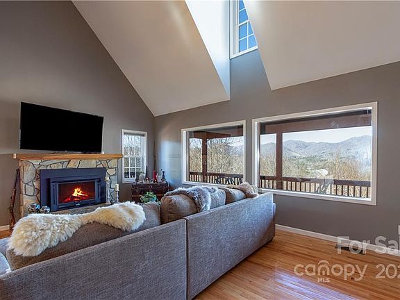 Breathtaking mountain sunsets abound from this beautifully decorated 3BR/3BA cabin located in desirable community west of Burnsville. This open floor plan home is freshly painted & move-in ready. Enjoy your favorite beverage while watching the sunset from one of the expansive decks or balcony of your choice. If the temperature is too cold outside then enjoy the views from the living room through the large picture windows while sitting by the beautiful stone fireplace. Kitchen features include stainless steel appliances, gas cooktop w/plentiful countertop space & cabinetry. Primary on main level. Upper level has 1BR/1BA & study/office w/private balcony. Lower level has 1BR/1BA w/large rec room or den area & ensures plenty of room for guests. Laundry & utility area on lower level. Just minutes to downtown Burnsville, only 30 minutes to Asheville!