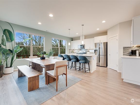 Nestled on a quiet street in a small community, this better-than-new Conner Home has a versatile great room concept, 9’ ceilings, sleek kitchen with stainless appliances, quartz counters, a center island, and a walk-in pantry. A cozy fireplace enhances the living and dining spaces. The main floor has a bedroom and ¾ bath, ideal for an office or guests. Upstairs, a spacious loft doubles as a game or media room. The primary bedroom boasts vaulted ceilings, picture windows, walk-in closet with custom organizers, and spa-like bath. Patio and fenced backyard backs to protected area! Many improvements; EV charger, custom paint, plantation shutters and more. Located near major amenities.