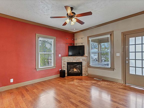 Enjoy the summer evenings on one of your 2 covered porches. Cozy 2 bedrooms, 1.5 baths with dual shower heads. Living room with gas fireplace & a separate family room. Large kitchen, with tile counter tops & backsplash, includes all the appliances. Detached 2 car garage & a courtyard with access to the backyard. Side yard is a perfect spot for a firepit. This home lives larger than it looks. Small town living, has everything you need. Close to downtown, hospital, and just a hop, skip, & jump to Salem.