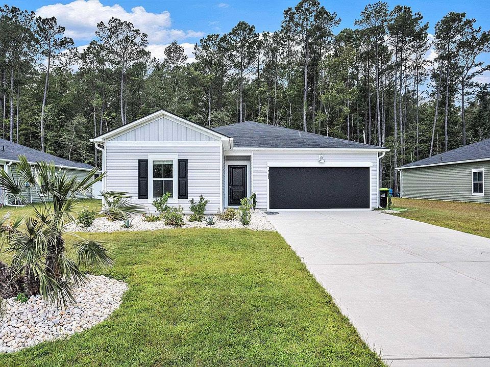 This is a well-kept, like new home with 4 bedrooms, 2 full baths, dining area, and very comfortable living room. The large utility room has plenty of space for laundry appliances and storage. The home has many improvements such as a high value remote screen to the garage door, premium landscaping with easy-to-grow Palmetto trees and treated pebbles for the flower beds and located at the end of the street with a spacious round turn-around feature for added parking and security. As part of the Saddle Ridge Community, you will enjoy a pool, picnic area, playground, and well maintained scenic lakes. This home offers country calm living with modern comfort. Tucked at the quiet end of the cul-de-sac in Saddle Ridge, this one-year-young, well-kept home pairs small town serenity with thoughtful, move in ready upgrades you don’t have to budget for later. Premium landscaping with easy to grow Palmetto trees and treated pebbles gives lasting curb appeal, and the end of street setting includes a spacious round turn around that adds a low traffic feel and convenient guest parking. Inside, an open, easy living design connects the living, dining, and kitchen areas for everyday flow and effortless entertaining. Durable LVP flooring runs throughout the home for a clean, cohesive look and low maintenance. The kitchen blends function and finish with stainless steel appliances, a gas range for responsive cooking, and sleek granite countertops that elevate the workspace. The split bedroom layout places the private primary suite apart from the three secondary bedrooms, offering comfortable separation for guests, a home office, crafts, or fitness. Two full baths serve the home with convenience, and a large utility room provides generous space for laundry and everyday storage, keeping life organized and out of sight. Outdoor living is a highlight. A covered back porch overlooks a secluded feeling backyard, perfect for morning coffee, quiet reading, evening wind downs, stargazing, or simply listening to the crickets after a long day. Comfort upgrades make daily life easier, including remote control window blinds for instant light and privacy control. The garage features a screen system that creates a breezy, bug free flex space for hobbies, workouts, or casual hangouts so you can enjoy fresh air without the pests. Saddle Ridge delivers the right community perks while preserving a rural vibe: a neighborhood pool, picnic area, playground, and well maintained scenic lakes. Everyday essentials, dining, and the charm of historic Downtown Conway are close by, giving you the best of both worlds, quiet when you want it, convenience when you need it.