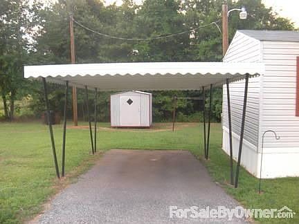 2 bedroom, 2 bath well maintained. Paved driveway with carport. Outdoor storage building. Concrete steps front and back. Washer/dryer connections, refrigerator and stove included. Open floor plan with vaulted ceiling, ceiling fan and window treatments included. Hot water heater replaced in 2006. Central air replaced in 2007 and new roof in 2010. New floor coverings in master bedroom, master bath, hallway and kitchen. One time owner and resident, very well taken care of. Great property for someone who would like to build in the future. For sale as is. Additional property info: http://www.forsalebyowner.com/listing/RD7V6?provider_id=28079