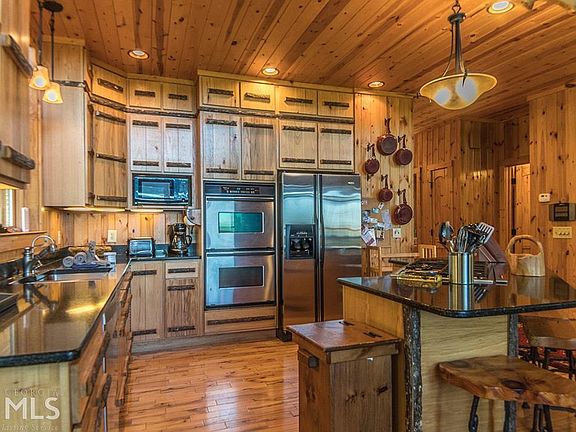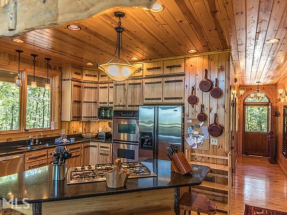 PRIVACY WITH THE WOW FACTOR on 6 acres of gentle, usable land...this grand lodge estate offers year-round, long-range mountain views of 3 states & adjoins the Boy Scout Reservation with main lodge boasting large upstairs master suite, master bath w/tiled showers, custom double vanity & large walk-in closets, main level lodge room w/stacked-stone wood-burning fireplace, gourmet kitchen w/SS appliances, custom cabinetry, finished terrace level w/recreation room & laundry room, detached 2-car garage w/additional bedroom, kitchen, laundry, full-bath & living area w/wood stove, wrap-around decking & circular drive. Minutes to both Lake Blue Ridge & Lake Nottley, hiking, biking, canoe & kayaking, downtown shopping & dining in both Blue Ridge & Blairsville