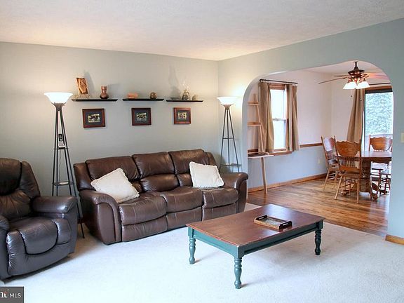 Ready to move into -3Br home with almost 4 acres on a country road. The spacious and private back yard is partly wooded. Refinished pine floors in family room and dining room. New vinyl in Kitchen. Coal/ Wood burning stove conveys. The bathroom has been upgraded and the 30 year roof is only 10 years old. Full unfinished basement. A 41'x 8' decking stretches across the back of the home with a canopy in the corner that will convey. An attic fan brings in cool air on warm evenings. One car attached garage. Two story workshop and storage building with electricity and plywood flooring . An 8x12 garden shed and a small green house in the back yard also convey.