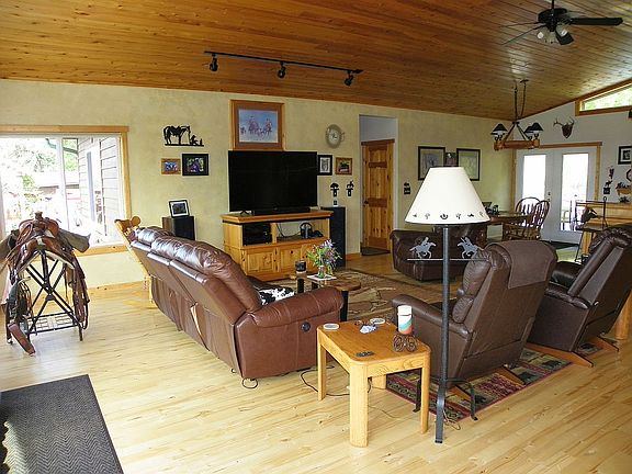 Three bedroom, Cedar home on 31 acres, with trees, fenced pastures, fruit trees, 2 car attached garage, attached storage/work shop, 3 yr. old HVAC system, 480 ft. deep well, LP heat and appliances. Automatic frost free/electric free horse/cattle waterers. Located on dead end road with private security gate. NO HOA's. Fisherman and hunters paradise.