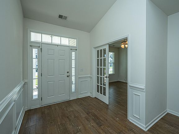 Cottage style exterior w/covered front porch for rocking. Grand foyer w/wainscotting leads to a large living/kitchen/dining area with 20' ceilings. Kitchen has large island, pantry, quartz counters & upscale appliances. Main floor offers 2 guest rooms or a den w/French doors & bathroom. Large primary bedroom, also on main floor, w/detailed tray ceilings, window seat w/storage & bathroom. Upstairs you will find a private guest suite complete w/walk-in closet & bathroom. This could also be used as a second living area. Step out your patio door into a breezy screened patio. Private backyard w/privacy fence & no neighbors to the left or behind you w/mature tree line. The roof is 1 year old. Spacious 2 car garage. This house has a blank slate for you to put in your own decorating touches!
