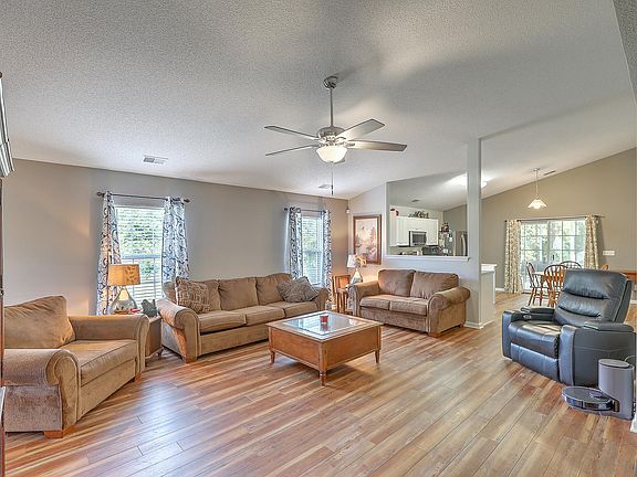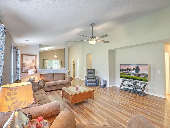 Convenient location! Almost an acre lot! Quiet neighborhood! Cul-de-sac lot! As you approach you will notice the front porch where you could rock the evenings away. Once you enter you will be greeted by the beautiful wood laminate flooring throughout the home. The large family room offers an entertainment cove and a vaulted ceilings with a ceiling fan. The open kitchen has a pass-thru window that could be used as a breakfast bar. The island has extra storage and electricity. The white cabinets have an above display area. The new stainless appliances include a dishwasher, a built-in microwave and a smooth top range. The dining area has glass doors for natural lighting. The master bedroom has a vaulted ceiling with a ceiling fan. The master bathroom has a soaking tub, separate shower and large vanity with make-up area. The second and third bedrooms are nice size and both have ceiling fans. The hall bathroom has a tub/shower combo. The laundry room has a shelf for storage. The screen porch has recently been rescreened and has a ceiling fan for a nice breeze. The large patio offers a great place for outdoor entertaining. This .85-acre lot has mature trees providing shade. The lot backs up to woods for tons of privacy. Other features include: newly purchased - HVAC in 2019 - appliances in 2021 - the laminate flooring installed in 2021 - water heater within the last 3 years. This home is conveniently located between Summerville and Goose Creek. Easy access to I-26. Shopping, restaurants and medical centers are nearby.