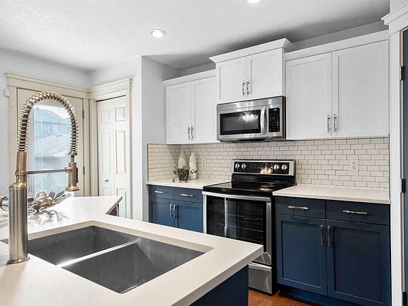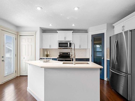 From the moment you arrive at 263 Evanston Way, there’s a sense of ease and possibility - morning walks to the school and green space directly across the street, kids riding bikes out front & a home that feels instantly welcoming. The covered porch opens into a bright foyer that sets the tone for the entire property: warm, functional, and designed for the rhythm of everyday life. A private front office offers a quiet retreat for work or study, while the convenient main-floor laundry and powder room keep routines simple and stress-free. The heart of the home opens up just beyond the hallway, where the newly updated kitchen becomes an immediate showstopper. Quartz countertops gleam beneath soft natural light, while two-toned cabinetry - crisp white uppers paired with striking blue lowers and island - creates a modern, designer feel. SS appliances and a generous pantry make cooking effortless, and the open-concept layout keeps you connected to the dining and living spaces at all times. The dining area easily accommodates family gatherings and weekend brunches, flowing seamlessly into the rear living room where a gas fireplace anchors the space with warmth. From here, large windows draw your eye to the beautifully landscaped backyard - complete with a two-tiered deck, pergola, and plenty of space to relax, entertain, or simply unwind in your own private outdoor haven. The heated detached garage adds year-round practicality you’ll appreciate. Upstairs, the home transitions into a private, restful retreat. The spacious primary suite offers room to breathe, with a calming ensuite featuring both a soaker tub and walk-in shower, plus a generous walk-in closet. Two additional bedrooms featuring newer triple-pane windows provide comfort for family, guests, or a second workspace. A full bathroom and an airy open-to-below landing complete a level designed for balance and comfort. The fully developed basement extends the home’s living potential even further. The expansive rec room is a true multipurpose haven - media space, gym zone, play area, or entertaining lounge - and the wet bar brings a touch of celebration to movie nights and gatherings. A large bedroom and full bathroom create a perfect setup for teens, guests, or extended family. With a new hot water tank, organized utility space, and thoughtful storage, this level is as functional as it is fun. Recent upgrades include new siding, new roof shingles, updated kitchen finishes, & central air conditioning mean you can move in with peace of mind and enjoy the home exactly as it is: warm, stylish, and ready for its next chapter. Altogether, this property delivers more than 2,200 sq ft of beautifully optimized living space across three finished levels. This home is located within the vibrant, family-focused community of Evanston - a neighbourhood known for its welcoming streets, walkable pathways, and thoughtfully planned parks. Come experience the feeling of home - book your private showing today.