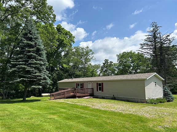 3-bedroom home with 2 full bathrooms on 3 acres close to Pymatuning Lake. Home has newer asphalt shingle roof; back deck; garage and shed; newer LVT flooring; new well pump. Appliances including electric range/oven, refrigerator, dishwasher, washer & propane dryer. Primary bedroom with large walk-in closet & full bathroom with soaking tub + shower. Garage and shed have metal roofs. Garage has cement floor with drain. Large open yard with mature trees including 4 apple trees. Gorgeous property in excellent location!