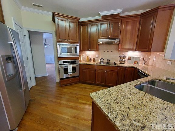 Welcome to Eagle Ridge ! Convenient Main Flr Living w/ 2nd Flr Bonus Rm. Enjoy 9th Hole Beautiful Golf Course Views. Privacy Split Bedroom Flr Plan. Open Foyer, Living & Dining w/ Gas FP & True Hardwoods. Chef's Kitchen w/ SS Appliances - Wall Oven & Microwave, D/W, Refrigerator & Cook Top. Expansive Owner's Suite & Spa Bath w/ Large WIC. Huge Bonus Rm & Walk In Attic. Walk In Crawl. Fantastic Amenities ! Coming Soon-Quick 540 Access & Costco ! Wake Tech, Shopping & Restaurants @ Ten Ten & 401 Close By