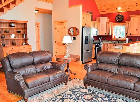 It's like living in a treehouse! Surround yourself in nature in this custom built log home that spares no attention to detail. Post & beam great room ceiling with a wall of east-facing windows, tongue & groove ceilings throughout, custom stone fireplace with a hewn log mantel, leaf and pine engravings on the stairs, hickory cabinets, granite tops and a half bath vanity repurposed from a vintage sewing machine table are a few of the special details. The important details are the stainless steel appliances, new HVAC (2018) on-demand Rinnai HW heater (2016) a whole house generator (2016) and more! The main floor of the house is open, spacious and sunny, surrounded by over 500 sq/ft of covered porch and a screened-in summer room. Two spacious bedrooms and a full bath upstairs while a bunk room, full bath, and workshop with a new Rinnai Propane heater are down. Outdoors enjoys nature with a firepit, fenced yard and sunrise views. Located a hop and a skip from charming downtown Burnsville!