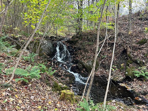 Wonderful family, vacation or retirement home with 2 baths 3 bedrooms, very good condition, very nicely remodeled with full bath featureing tub and shower off the master bedroom with back stairs and full sized staircase to first floor. View of brook from back porch. Enclosed spacious front porch. Charming barn attached with potential for one car garage. Enjoy heating options of forced hot water baseboard heat with your choice of wood or oil. A fabulous 5 acre lot with large lawn, trails through the forest and by the waterfalls. Frontage on two roads with local views. Large bonus room on first floor for office / family room your choice. Nice sized kitchen, dining and living room.. A choice property for country living !