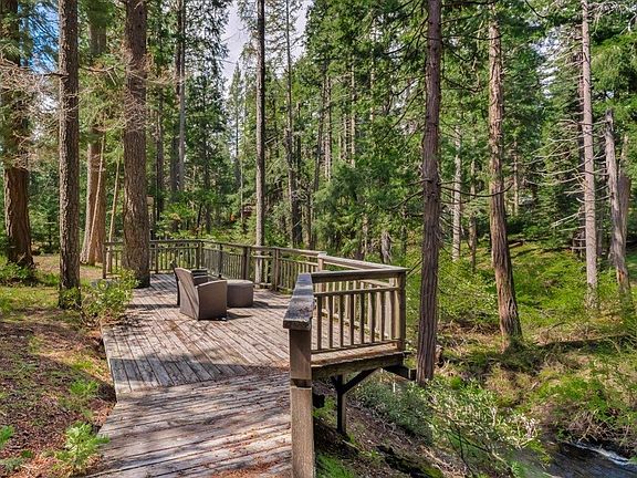 MT SHASTA HOME -WAGON CREEK BEHIND THE PROPERTY - sit on the spacious deck built over Wagon Creek and relax to the sound of rushing water. This 3 bedroom, 2 bath Mt Shasta home offers 1630 sq. feet of living space at an affordable price. A wonderful place to spend your summer evenings with family and friends. The Primary Bedroom's sliding glass door opens to the backyard and you fall asleep to the sound of the creek. Beautiful cedar trees surround it in this desirable Mt Shasta neighborhood. The renovated Primary Bath boasts an extra deep tub and has a spa like feel. The original hardwood oak floors add rich element to the living room, hallway and all the bedroom. The sleeping cabin in the back yard offers limitless possibilities for a remote office, yoga studio or meditation space. Three miles from downtown Mt Shasta, Lake Siskiyou and our 47 miles of mountain biking trails; 20 minutes from Mt Shasta Ski Resort. You will love this area.