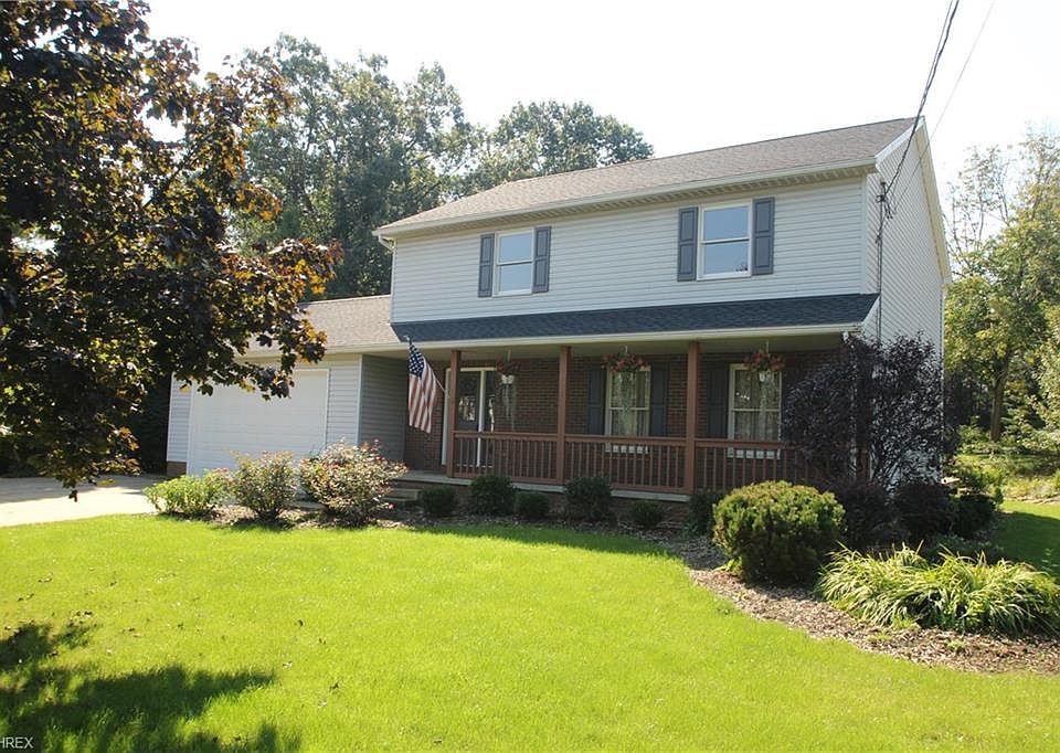 Beautiful Colonial 3 bedroom home nestled in Hudson Ohio. This home sits on a lot with mature trees and has a 12x10 shed in the back yard along with a huge 18x32 maintenance free deck off the rear of the home. Roof is new in 2017. Out front you are greeted by a very large concrete driveway with able space to turn around or store additional vehicles. The front 32 ft wide covered front porch welcomes you into the first floor of this lovely home. Inside the first floor has a large Living Room, and an Eat in Kitchen that has an Island and plenty of counter space and showcases beautiful Hickory Hardwood floors that extend into the living Room and foyer. 1st floor laundry with access to the back deck. Upstairs are 3 bedroom, all with brand new carpeting in 2018. The Master bedroom has a large private master bathroom with dual sinks, stand up shower and a relaxing soaking tub. The basement also has a finished office and Family Room. New Hot water tank, HVAC 2016, Water Softener new in 2017. This home is very well maintained and will not last long!