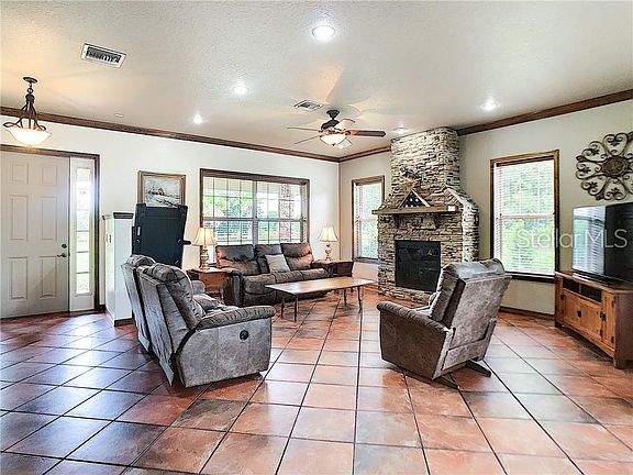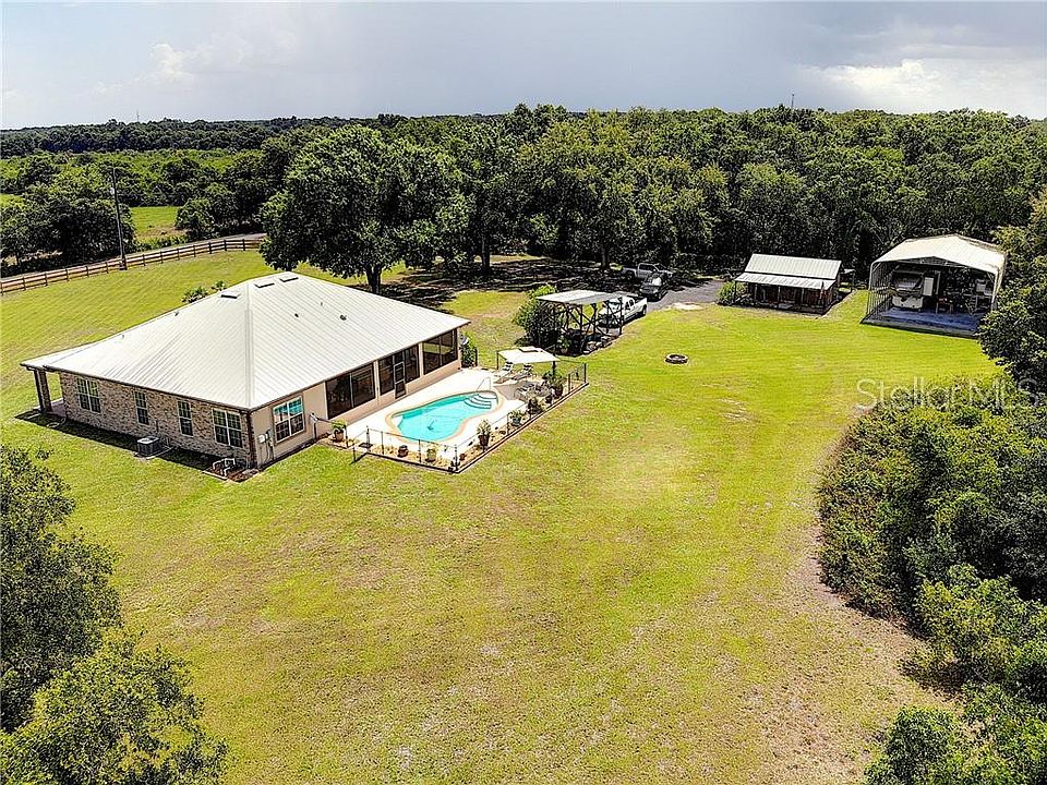 Looking for a peaceful, private place to call home, look no further! Welcome to Country Living with City Convenience. This Energy Efficient Custom Built 3 Bedroom, 2 Bath Pool Home is Fenced, Gated, has No HOA and is perfectly situated on over two acres outlined by Oak Trees and Lush Grounds! True Open Floor Plan, High Ceilings, Tile Throughout Main Living Areas. Layout Includes GreatRoom with Kitchen & Dining, Large Indoor Utility Room, Spacious Master Suite with Bonus Room, 2 Add'l Lg Bedrooms, Guest Bath & Lanai. GreatRoom with 10ft Ceilings, Crown Molding & Tile Flooring. Stone Stacked Gas Fireplace & Ample amount of Room for Entertaining. Kitchen with 42" Custom Cabinets, Tile Countertops & Backsplash, 9ft Island with Stone Facade & Storage, Walk-In Pantry. Master w/ Bonus Room-Perfect for Office or Nursery! Walk-In Tiled Shower with Bench, Dual Sinks, Linen Closet & Walk-In Closet. 2 Add'l Bedrooms & Full Bath. Enclosed Lanai Overlooks Yard, Gorgeous Salt Pool-New in 2015, is Professionally Maintained & perfect for morning coffee while enjoying nature. It's also Hot Tub Ready with Electric & Water, Plumbed for Outdoor Kitchen. Plenty of Room for RV, Boat & Toys! 30x50 RV/Boat Barn Built in 2016, 2 Barns/Workshop with a 100amp service. Add'l Features Incl: 50yr Metal Roof, New Exterior Paint, New Entry Fence, LED Lighting, Upgraded Fixtures, Pre-Wired for Security & Surround Sound System! Located Conveniently to Schools, Shopping, Restaurants & More!