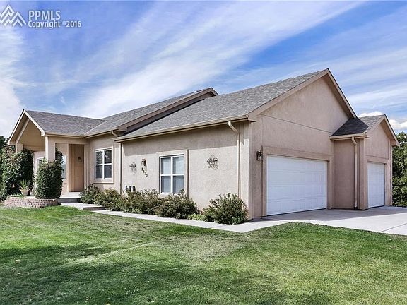 Quiet cul de sac location, 1.25 acre lot, no covenants or HOA, plenty of room to park your RV, trailer/extra vehicles & space for outdoor play. Scenic west side location. Private well/septic/low utility bills. True main level living. Low maintenance stucco exterior, huge great room features fireplace, built in's & gable end windows. Walk out to private covered deck from kitchen and master. Sunny main level laundry. Easy access to I-25 for commuting to CS or Denver. Santa Fe Trail right out your back door. Welcome home! Lower level features walk out from large rec room, oversized bedrooms & office. Oversized 3 car garage. Perfect teen or guest suite in sunny walk out lower level. Views of front range and rock formations. Loads of storage. Spacious yard with flower gardens, lilacs, shrub oak & tall pines. Brand new roof Nov. 2016 with transferable warranty.