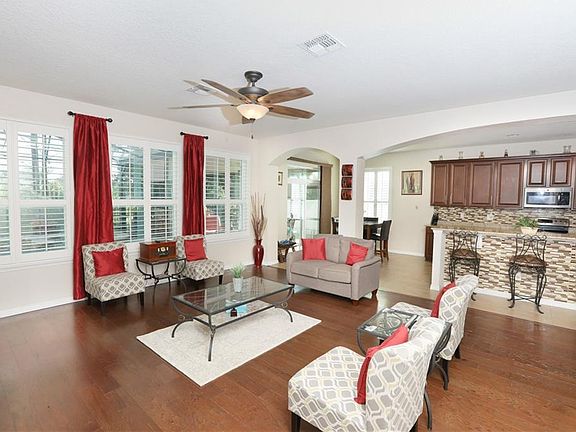 Located in heart of St Cloud in a well maintained neighborhood this home is the ONLY model Meritage Homes made and it is sure charm those buyers with families looking for a quiet place they can ride their bikes or walk. As you walk through the front door the soaring ceilings are almost enough to stop you in your tracks. Spread out and relax in the huge Family Room whose wood floors compliment the Kitchen backsplash and cabinets extremely well, to watch TV and wait for dinner to be served at the granite Breakfast Bar or the nook. Located on the 1st floor as well is a room that can serve as an excellent study OR 2nd Master Bedroom. Second floor Master Bedroom has a great view of the peaceful pond behind the house, and the sunsets there are something to see. As you walk outside towards the Mini Resort Pool I mean pool deck, it's loaded with everything one would need for BBQ's, Parties or even simply sipping a Mimosa underneath the covered bar, grill and refrigerator. Adjacent to the pool deck is the Pet Garden for the future owners' animals so the owners can keep an eye on them while enjoying the Florida Sunshine. Other features include energy efficient windows, water efficient sinks and toilets, a Water Softener System, fans in all the rooms, LED Lights, Plantation Shutters and the playground across the street. When value is clear decisions are easy!