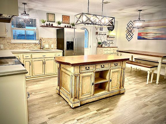 Check out this gorgeously remodeled 3/2 home with a mother-in-law located in the privacy fenced in back yard. The main house features new premium Luxury Vinyl Plank flooring and Tile flooring throughout. Custom concrete countertops as well as solid wood cabinets. These features help create a uniquely exquisite Chefs kitchen complete with a gorgeous Island. The Livingroom features an open floorplan, a beautiful bay window and a recessed luxury LED fireplace with a custom solid wood surround. You won't have a water bill thanks to the deep well with a new top of the line Pelican water filtration and water softening system. The central air system and heat pump in new and less than 2 years old. The water heater is less than a month old as well. You'll fall in love with the large master bedroom with his and hers closets. The master bathroom has been updated with a custom travertine tile walk-in shower and a gorgeous double vanity. The separate Mother-in-law suite is complete with a bathroom, full kitchen with Granite countertops, stainless steel appliances, a tankless water heater and it's very own laundry room.