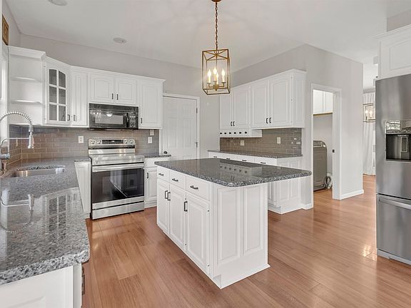 This stunning 4-bedroom, 4½-bath residence in the highly desirable Brookshire Crossing neighborhood offers a perfect blend of elegance, comfort, and thoughtful updates throughout. Set on a beautifully landscaped one-acre estate lot, the home welcomes you with exceptional curb appeal—highlighted by a full exterior repaint, new shutters, updated lighting, and a charming covered front porch complemented by an extended driveway for ample parking. Inside, sunlight fills the spacious and inviting layout. The family room features a cozy gas fireplace, while the remodeled kitchen serves as the heart of the home with abundant cabinetry, a generous center island ideal for gathering, and direct access to the garage. The kitchen seamlessly transitions into the bright eat-in area, which opens to an expansive rear deck with a pergola and new deck flooring—perfect for relaxing or entertaining. Recent enhancements include a renovated kitchen with updated cabinetry and appliances, a new refrigerator, washer, and dryer, and a new AC cooling compressor installed just six months ago. Upstairs, each bedroom has been freshly painted, and the primary suite offers an impressive retreat with space for a sitting or workout area and a spa-inspired en suite featuring dual vanities. The lower level was fully renovated in August with new flooring and paint, adding a polished touch to the finished basement. Since purchasing the home in 2022, the owners have invested in significant improvements, including the kitchen renovation, complete exterior repaint, upgraded lighting, replacement of deck boards, and new HVAC—all contributing to a refined, move-in-ready home that combines modern convenience with timeless sophistication.