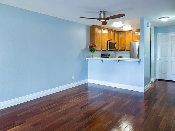 Immaculate 1BR/1Ba in beautiful Bay Park. Two minutes to I-5 at Clairemont Dr., walk to local restaurants, coffee houses, and beautiful Mission Bay Park with expansive picnic areas. Walk or bike around Mission Bay's wide paths. Minutes to Mission Beach, Pacific Beach and La Jolla Shores. Near grocery store, within 15 minutes of downtown, Gaslamp dining, Little Italy, airport. Bright first floor end unit with enticing Royal Mahogany hardwood floors, new stainless energy-efficient full size Whirlpool/Bosch kitchen appliances, energy-efficient lighting, washer/dryer in unit, designer ceiling fan, A/C, fireplace, double-paned windows, 2 large bedroom closets, stylish vanity area and bathroom with floor-to-ceiling tile surround, gated underground designated parking, beautiful landscaping, pool & spa. Co-signers/Guarantors recommended and required for students or part-time workers. Approved Tenant to pay a one-time Broker fee of $500 upon signing the lease documents.