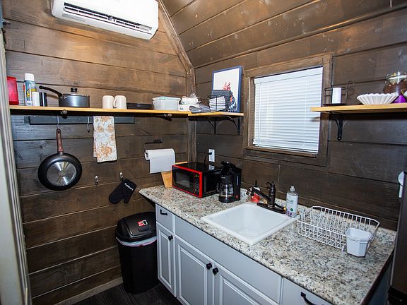 Tiny home located on small farm. Includes kitchenette with refrigerator, toaster oven, microwave and kitchenware. Full private bathroom. Fully furnished with kitchen table and chairs and Queen size bed. Hardwood floors. Private deck off the front of the unit. Access to a bath house and laundry facility on the property. Owner pays utilities (water, electricity, lawn care, pest control, and trash).