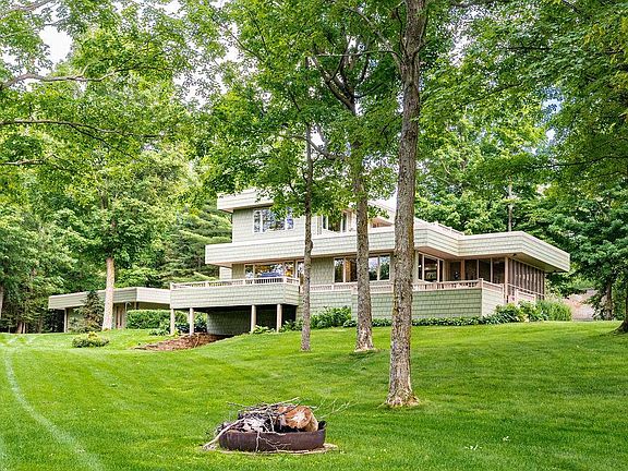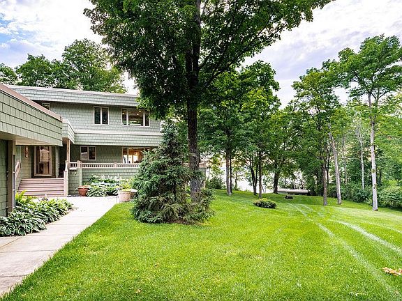Iconic Mid-Century Modern Pokegama Lake home. One of a kind property with 232' West facing Pokegama Lake frontage feet and adjoins Pokegama Golf Course . Updated 4 bedroom, 3 ba. home with custom upgrades, while nestled in the mature trees on over 6 acres. Cherry cabinets, granite counter tops, Trex decking/railing and maintenance free siding make this property turn key. Enjoy the gentle slope from your large screen porch to the grandfathered in 522' sq ft boat house on waters edge. 24 x 30 detached garage along with 2 Pole barns. 1st is 32 x 42 insulated, and perfect for trophy room or golf simulator. 2nd building is 42 x 42 with 16' side walls for RV's or any of your storage needs. Take your golf cart to the golf course for dinner or a round through your two entrances on the 17th hole. Entertain guests while you grill on your deck while watching boats park on Drumbeater island. Please view the virtual tour to really encompass all this property has to offer.