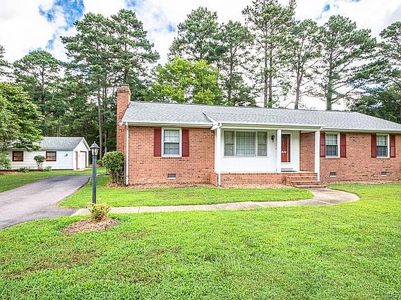 Welcome to this all brick, well built home! This home features a large Utility Room with a washer & dryer that convey! An eat in Kitchen with Pine cabinets and all aplliances including a refrigerator! There is a Family Room with a masonry fireplace that includes a woodstove! The Living Room, Family Room and Hallway have carpet over top of oak wood floors! The Bedrooms are spacious with wood floors! The Owners Suite has 2 closets and a private full bath with a shower! There is a 20x12 rear deck that has composite decking and vinyl railings!! The detached Garage is 24x20 and has a new roll up door! The dimensional roof was replaced in June of 2020! The new heat pump and central air was installed in June of 2020 as well!!! This home is very convenient to major interstates and 20 minutes to Downtown Richmond!