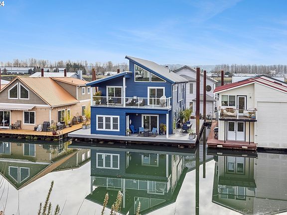 Incredible value! Welcome to your perfect retreat on the river! This stunning floating home boasts a reverse floor plan designed to maximize natural light & breathtaking views. Great room is spacious & includes dining area, gas fireplace, vaulted ceilings and a wall of windows opening to a private deck. Handsome Chef's kitchen with granite, stainless appliances and cooking island is well designed for cooking and entertaining. Roomy owners suite with walk-in closet and bath offers a comfortable retreat at the end of the day. Lower level includes two large bedrooms, laundry room w heated floors and bonus room perfect for office, den or workout. Dock your boat right outside your doorstep on the wrap around deck which offers great spaces for outdoor living and entertaining. Inside Moorage location is extra quiet and private. Slip is owned and includes rare double car garage. Moorage has steel pilings & concrete walkways and is well run with low HOA's. Central location on Hayden Island is close to PDX and downtowns in both Portland and Vancouver with Jantzen Beach shops and services right around the corner. Make everyday a staycation in this fantastic riverside home.