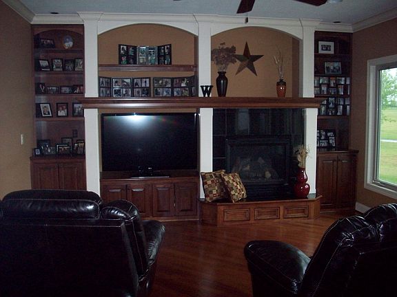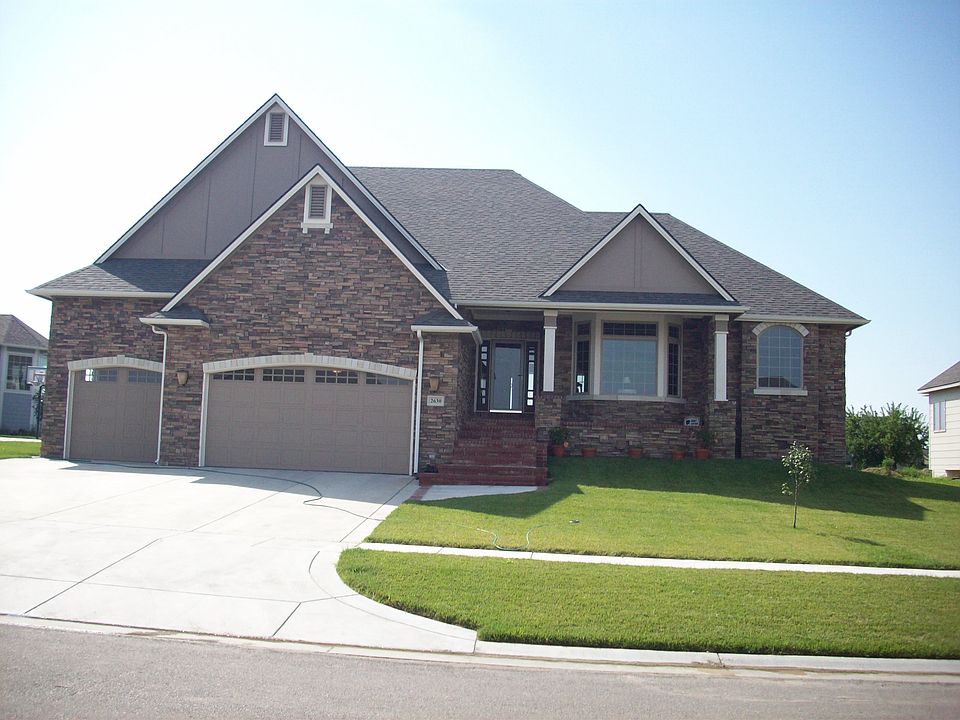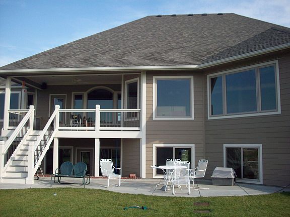 High quality, better than new home overlooking 10th fairway! Exquisite view from every room on the back of the home. Open floor plan with large formal dining room, beautiful arches, crown molding, custom made cabinetry and upgrades throughout. Spacious kitchen hearth area perfect for entertaining featuring fireplace, wood flooring, granite, built ins, pantry and more! Split bedroom plan featuring 2 spacious bedrooms and wonderful master suite with over sized master bath featuring double vanities, large shower and jetted tub, built in dressers and walk in closet. Main floor laundry room with utility sink, extra cabinets and folding table. Drop zone located near garage door. 3 car garage is sheet-rocked. Finished walk out basement featuring an entertainer's dream! Large wet bar with space for a fridge and microwave, canned lighting, surround sound and fireplace. Radiant heat flooring throughout main area of basement with beautiful stained concrete! 2 more large bedrooms with large bathroom. Possible theater room in unfinished area. Lots of storage including safe room with steel door. Exterior features class 4 roof, composite deck with surround sound and large patio overlooking golf course.