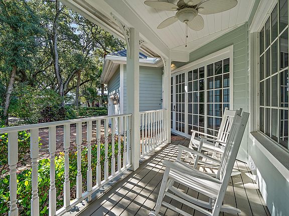 Light filled Key West style home at end of cul de sac in sought after Natures Hideaway - unique gated enclave of 17 custom homes minutes from beaches, marinas, shopping & dining. Exceptionally detailed home has 4 BRs/4 Full Baths w/family room + loft. Front to back French door entry hall leads to open dining & living area w/2 story ceiling. Wide plank wood floors & crown molding throughout. Kitchen w/center island has breakfast area w/bowed windows overlooking private & serene fenced in yard. Family room w/FP has french doors to front porch. 1st floor Master Suite w/luxe bath, WIC + french doors to deck. 3 large additional BRs up + loft, laundry & large veranda. Inviting outdoor oasis w/heated saltwater pool/spa, 2 decks & lush landscaping. Impeccable condition. Move in Ready!