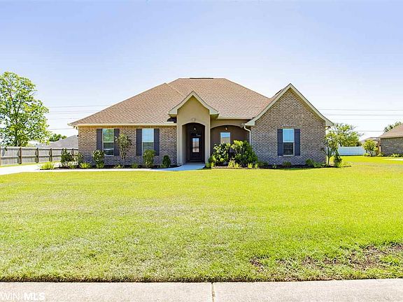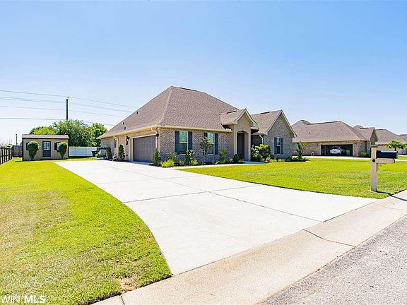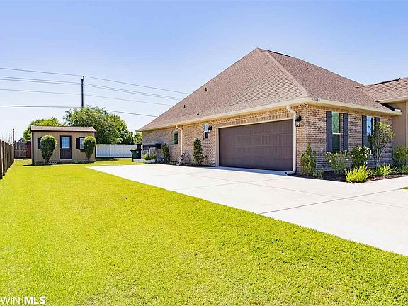 Built in 2015, this home has been impeccably maintained and looks like new. This beautiful house features an open floor plan with a large 23 x 20 Living Room, designer cabinets, granite counter tops, Stainless Steel Appliances, deluxe crown molding, fireplace with granite surround and high ceilings. The home sits on an extra large lot at the end of the street so there is no passing traffic. Large covered back porch, partially fenced and comes with a storage building perfect for a work shop or a she shed. Located off of Hickory Street in Pebble Creek this home is minutes away from downtown Foley.