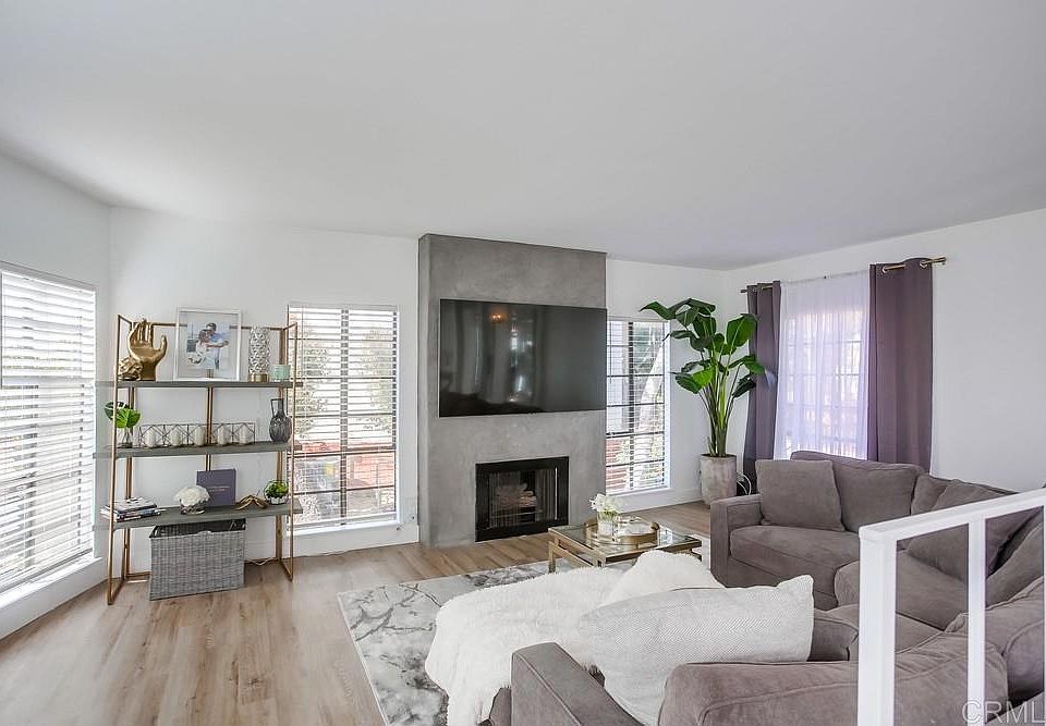 Gorgeous 2 bedroom, 2.5 bathroom, 2 story corner unit, on the end of a very quiet cul-de-sac, floor to ceiling windows provides lots of natural light, 3 private balconies (off both bedrooms and kitchen), Featuring beautiful views of the La Costa Golf Course and nearby mountains and valleys in the community of Carlsbad! Highly sought after school district and a short drive to beautiful nearby beaches. Enjoy this move-in ready open floor plan with a fully remodeled kitchen & bathrooms, fresh paint throughout, new baseboards, new flooring in bathrooms & kitchen. Fully remodeled gourmet kitchen was professionally designed for optimal space. New High end custom kitchen cabinetry and hardware, has pull out drawers, pantry, lots of space, quartz counter tops, new sink, recessed lighting, new microwave & dishwasher. All matching appliances including a new stackable washer & dryer for your convenience. The family room offers a newly extended fireplace and high ceilings that flows seamlessly to the dining area. The bedrooms offer large closets, new updated and matching vanities and toilets in all bathrooms. High-end furnishings from ZGallerie and Restoration Hardware. Decorated floor to ceiling. Everything from rugs to curtains, dressers, mattresses, lamps, cozy couch, large screen TV’s, 8 seat dining room table and chairs, even plants can be purchased. Additional property highlights include assigned, gated, covered garage parking, and air conditioning. Community amenities include a swimming pool, spa, barbecue area.
