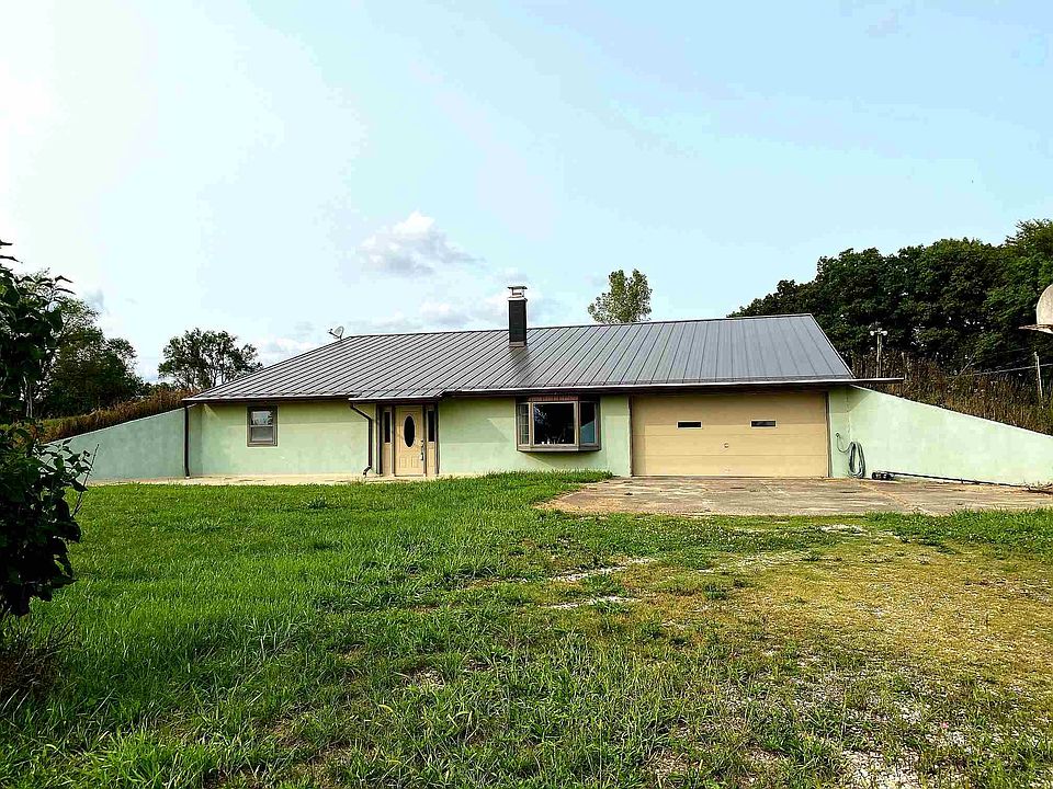 3 Bedroom, 2 Bath Earth Shelter Home situated on 1 3/4 acres. 8" Solid Concrete Walls with 1/2' rebar every foot horizontal and vertical. Wall safe in Master Bedroom. Custom closets in all bedrooms and entry closet. New Metal Roof tied with new drainage ditches. Stainless Steel Chimney Cover. New Water Softener and plumbing in utility room. New concrete patio. All electric. Wood-burning Stove. Skylights. Newer Kitchen Cabinets, Subway Tile Backsplash. Home needs TLC. SELLING AS IS There are 2 additional 5 acre parcels that can be purchased for $30,000 each.